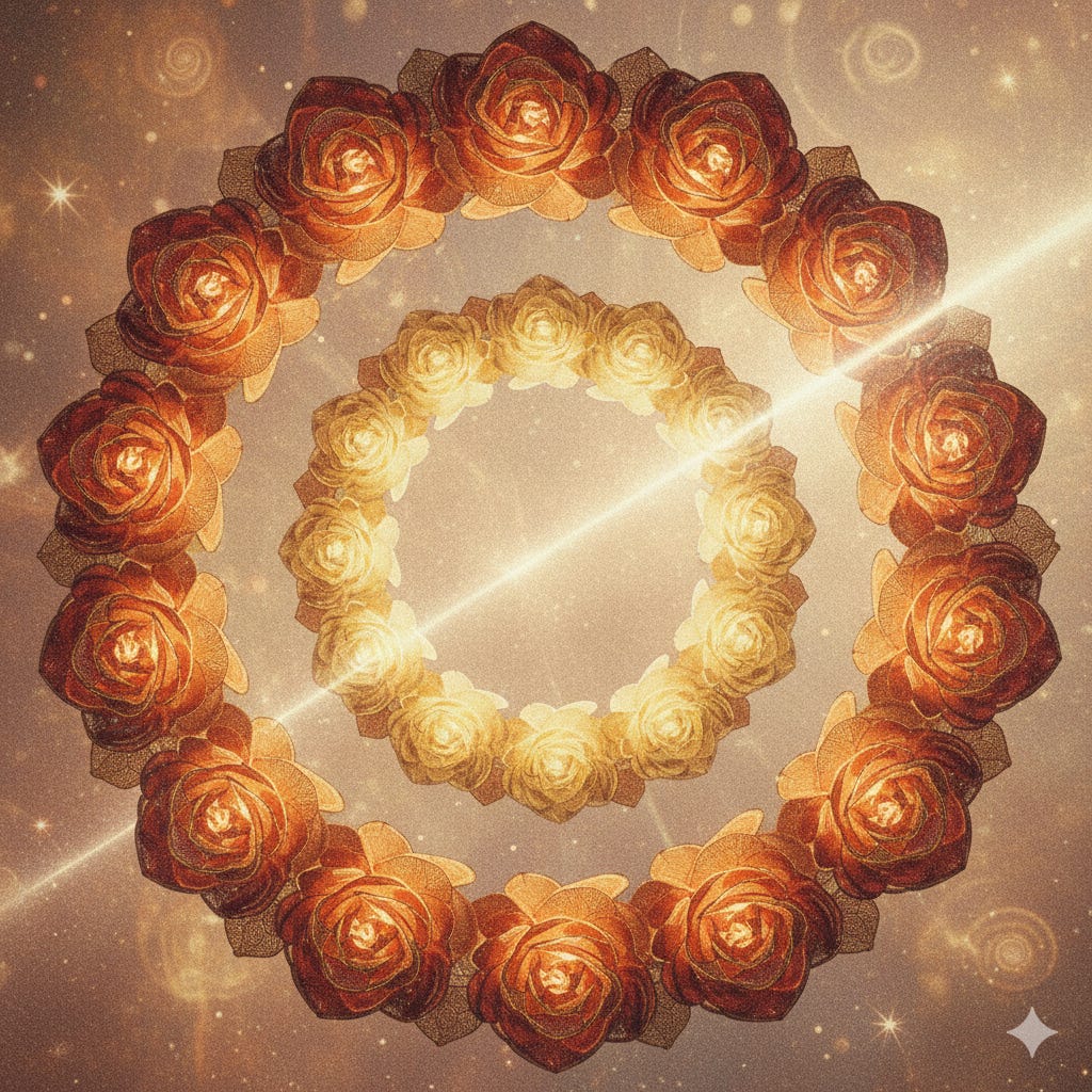 Brevemente: nei canti XII e XIII del Paradiso Dante descrive le due corone (ghirlande) degli spiriti sapienti (beati), dalle quali si levano due voci: nel canto XII quella del domenicano san Tommaso, il quale tesse l’elogio di San Francesco e nel canto XIII quella del francescano san Bonaventura da Bagnoregio, il quale a sua volta svolge il panegirico di San Domenico. E Dante, dopo aver descritto un’ampia similitudine delle due ghirlande con i due cerchi dell’arcobaleno, i quali si volgono “paralleli e concolori”, aggiunge, come abbiamo visto: così si volgevano intorno a noi le due ghirlande (formate dai beati) intessute di rose sempiterne (che non appassiscono come i fiori terreni) e così quella estrema, esterna, rispose (nel canto) a quella intima, interna.
